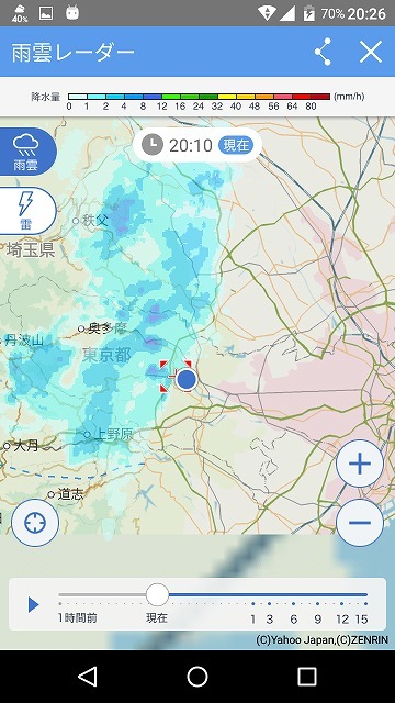 こんな感じで雨雲が近づいてくるとアラートで知らせてくれるんだけど、恵の雨じゃー♪(゚∀゚)って喜んでも結局雨が降らない場合が殆ど…w