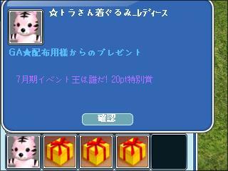 イベ王で20ポイント以上獲得したらしくプレボにトラさん着ぐるみが届いてたんだけど、たぶん着る事ゎないと思います…w