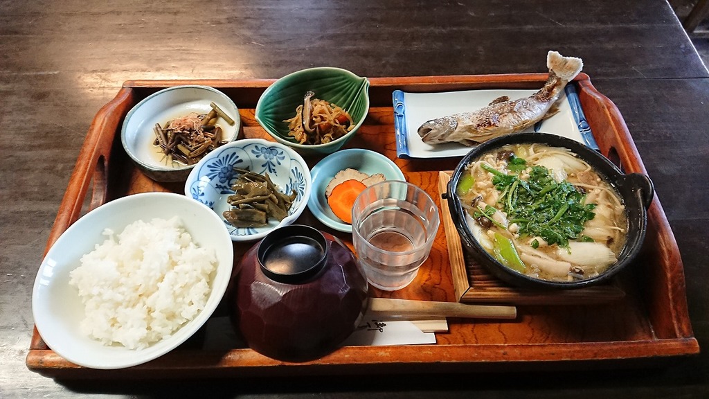 せっかくなので、ここで昼食をいただきました♪ 山の芋鍋定食(岩魚付)1750円