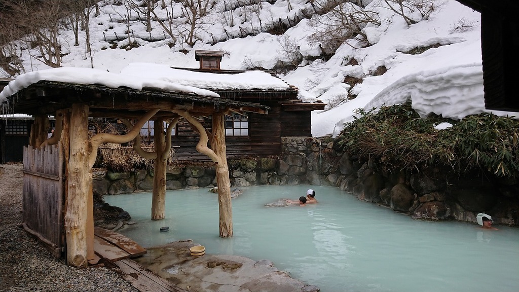 雪景色を眺めながら温泉いいですね、羨ましい!