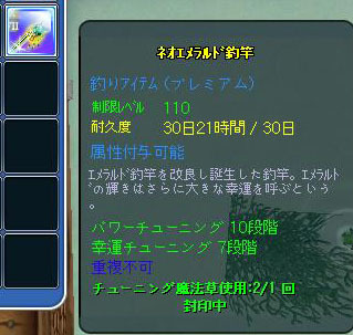 今週は竿のチューニング成功確率がUPしているので2-2で止まってた110竿をチューンしました^^