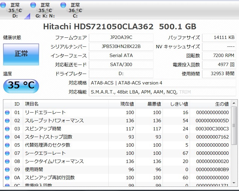 ↓ 購入時に一緒に入っていたDドライブ 電源投入回数が4900回越えているのが何か凄いにゃー