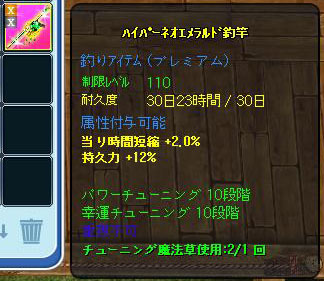 10-7で止まってた110竿を10-10にチューニングしました^^ 今日は調合運が良かったみたいで、1回目は失敗しましたが、その後3回連続で成功しました^^