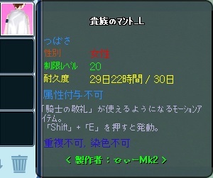 次にブック調合で貴族のマント_Lも修繕可しました。。