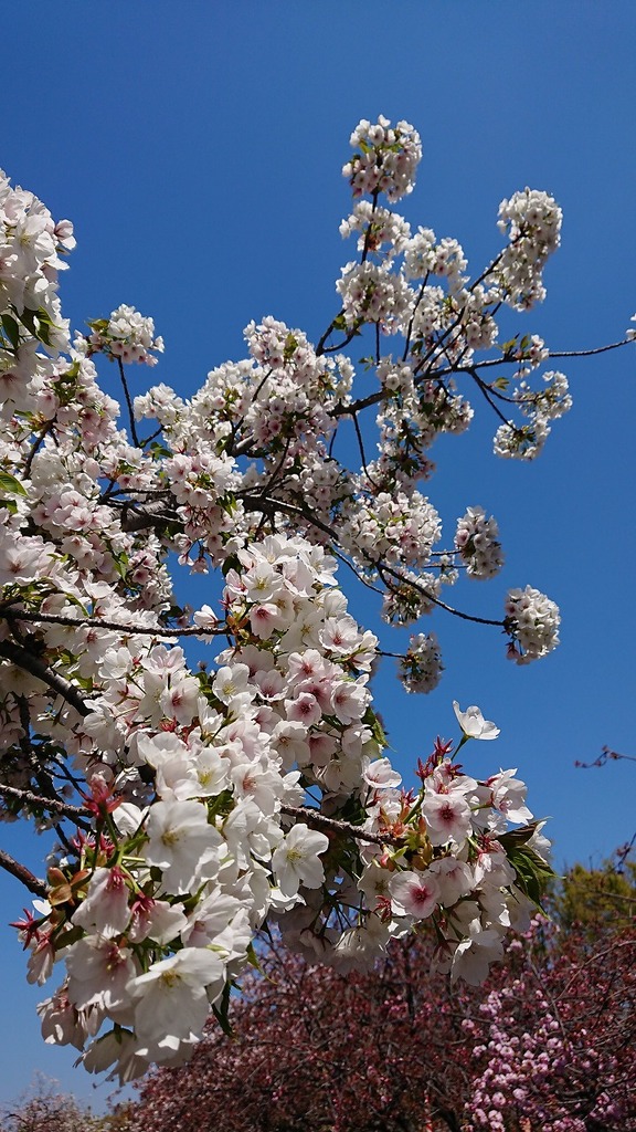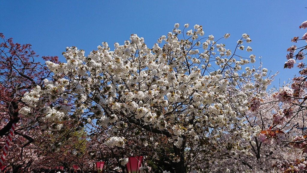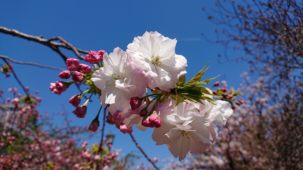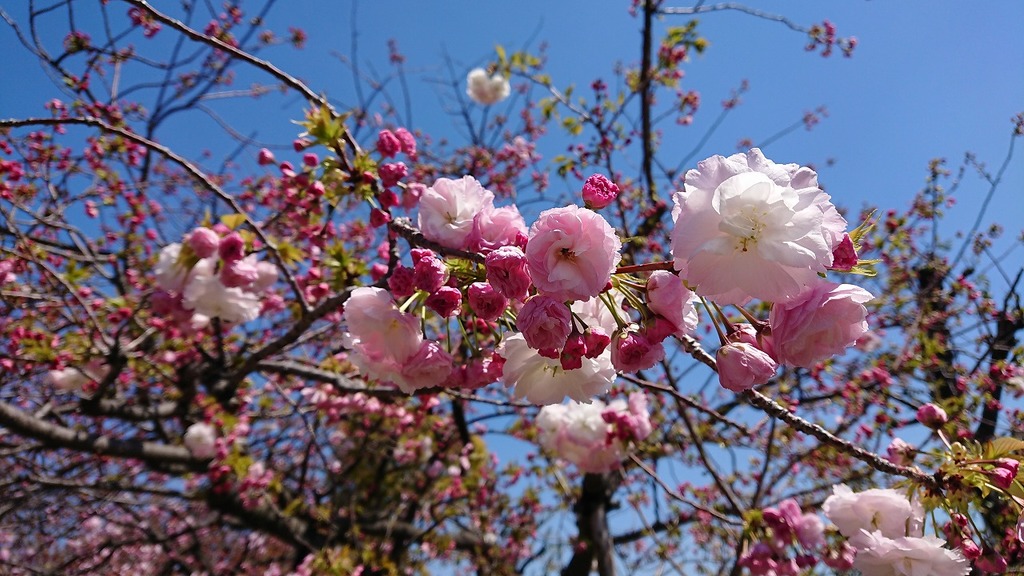 色んな桜の花があって、晴天に桜が綺麗な写真ですね♪