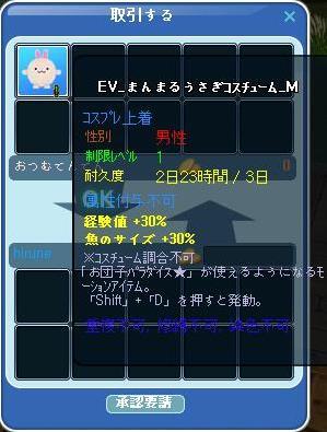 まんまるうさぎ着てみたいって思って昨日、露店見てたけどレアなのか500万とかでEVなんだけど売ってた。