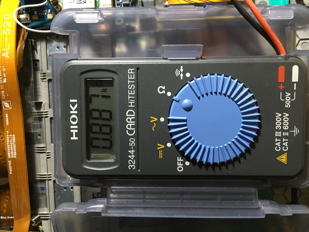 こんな風にコンデンサごとの抵抗を測ります。