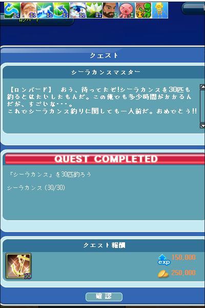 シーラカンスのクエストも終わることができました✨ヽ(`▽´)/ ワーイ