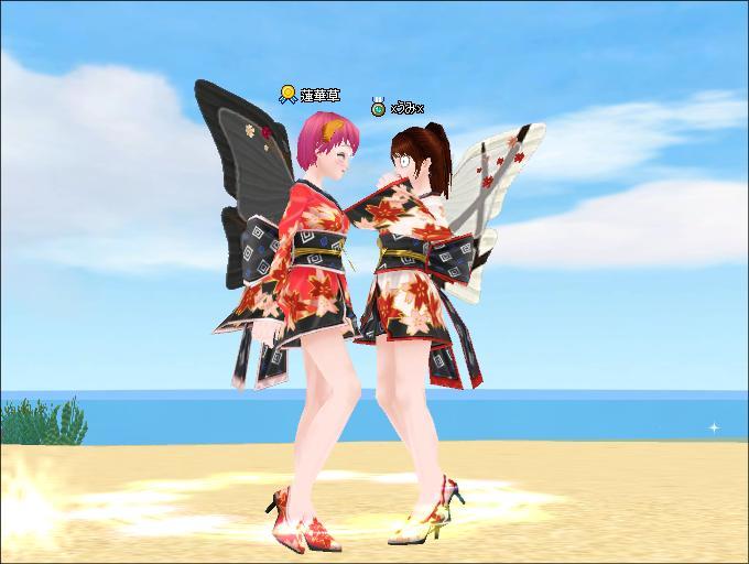 私は、まだ作ってなかったので、れんちゃんに、糸を頂き、その場でシャシャへ^^前回は、8回もかかったので、今回は何回か覚悟して、LV20の浴衣にしたら、1発でできちゃった^^;娘たちは、それぞれたくましく、育ってるわぁ~^-^この浴衣、足がきれいに見えるから、好きです~♡