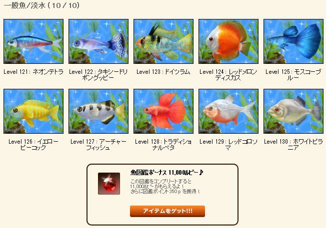 | お魚図鑑完成お(・∀・)め(・∀・)で(・∀・)と(・∀・)う! |