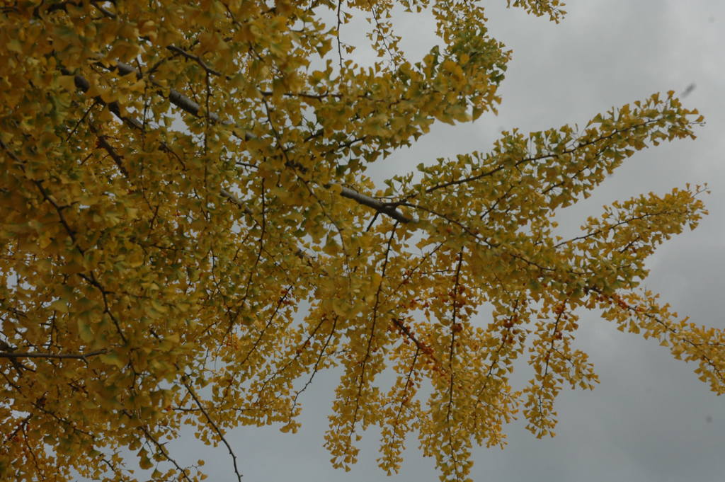 もうイチョウが色づいているんですね。こちらはまだ青々としてます。