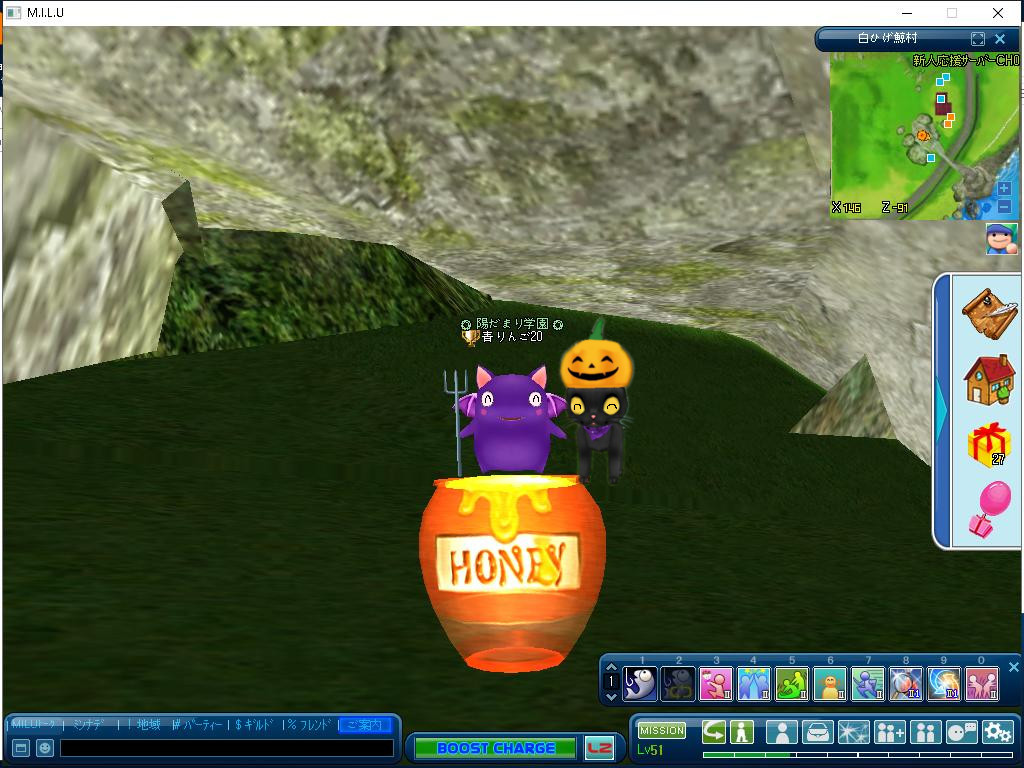 穴の中で二人仲良くはちみつを食べるあくまとかぼねこ(・´з`・)