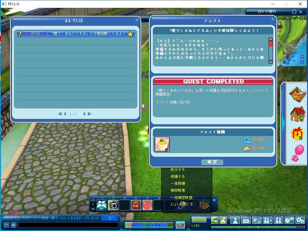 イベントのクエストは、ひとつだけ完了しました。