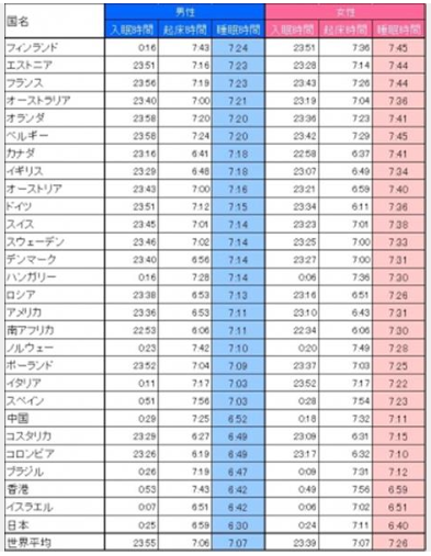 | 日本最下位なんですね! 質のいい睡眠がほしい^^; |
