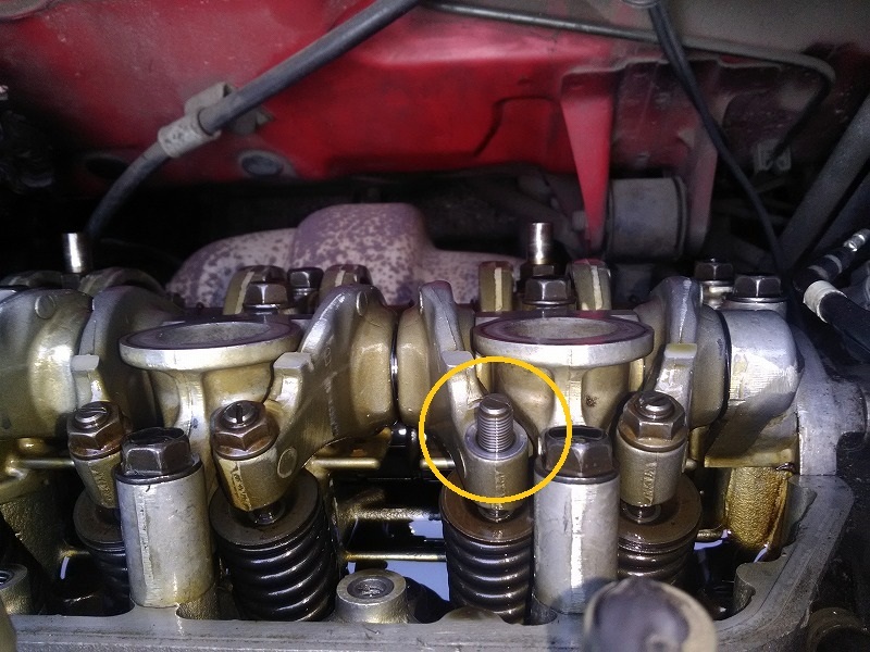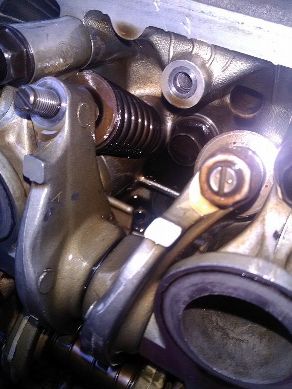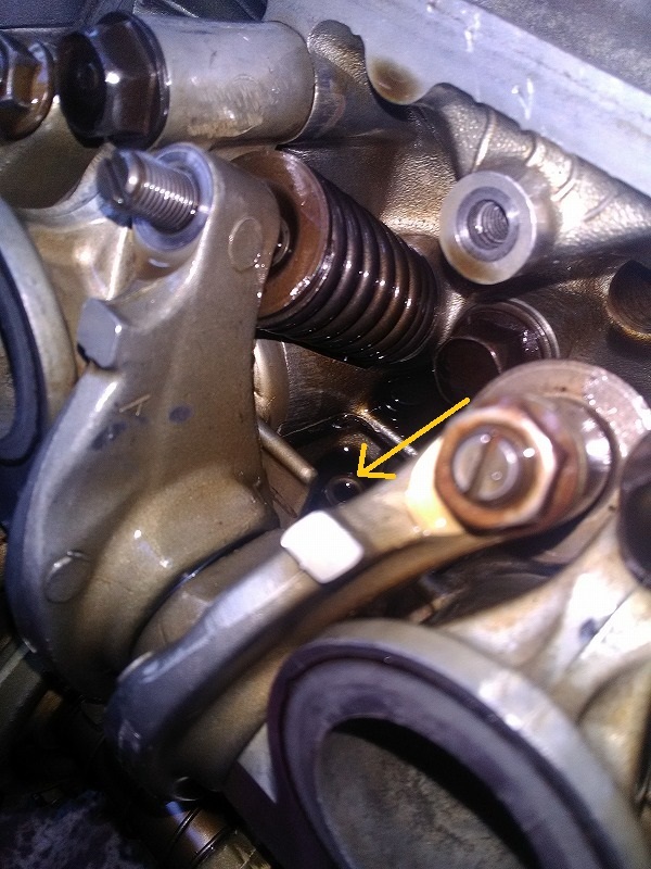 それで聴診器を各部品の箇所を一通り当てたら最も音が大きかったのがエンジン本体からだったので、タペットカバーを外してみたら何と3番シリンダーのロッカーアームのナットがないジャマイ( ✧Д✧) カッ!!