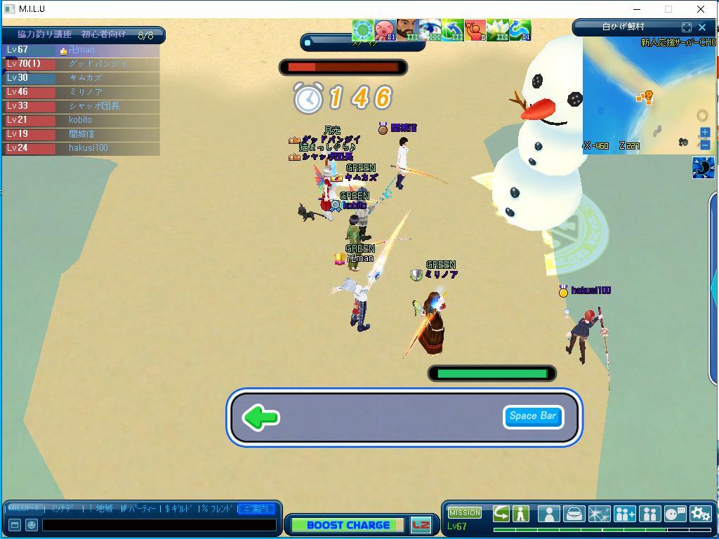 イベ掘りが一段落ついたので、イベント協力釣りをしました。Kobitoちゃんが初めてだったらしいのですが、存分に楽しめたようです(`・ω・´)ノそれにしても、陸にしか投げ込めない場所…これって不具合?