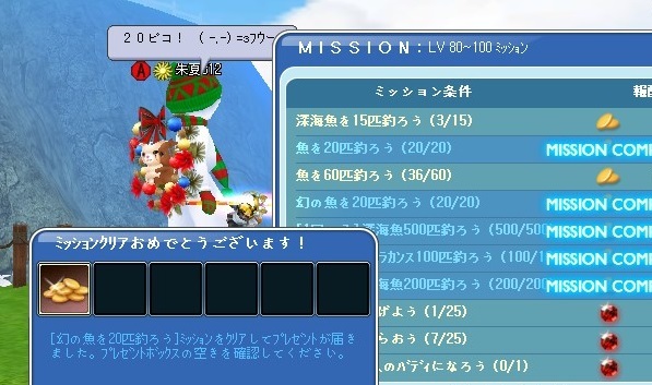 昨夜は、チーム対抗のマボも釣って、0時過ぎたら時限クエもらって