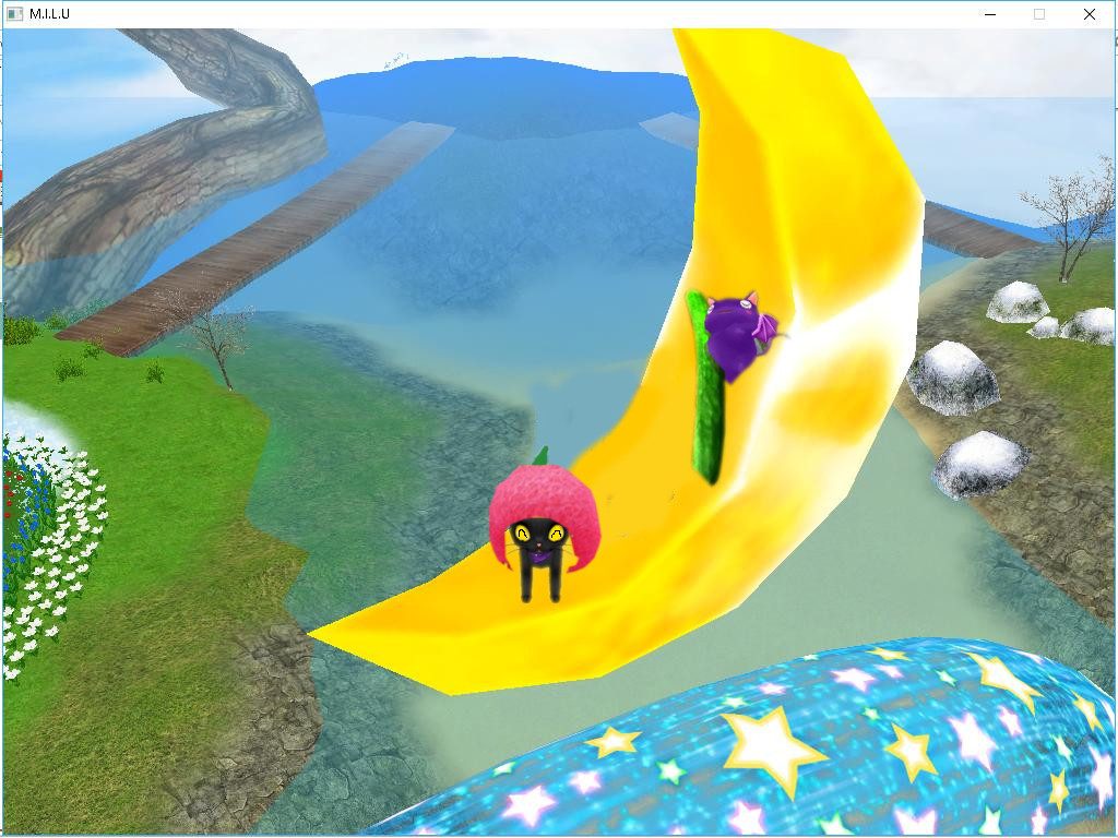 月の上で寝るあくまとアフロが意外に気に入ったかぼねこ(・´з`・)