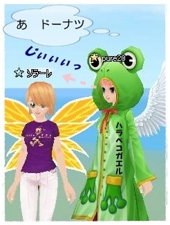 食いしん坊ガエルが 謝ると 女の子は 許してくれました。