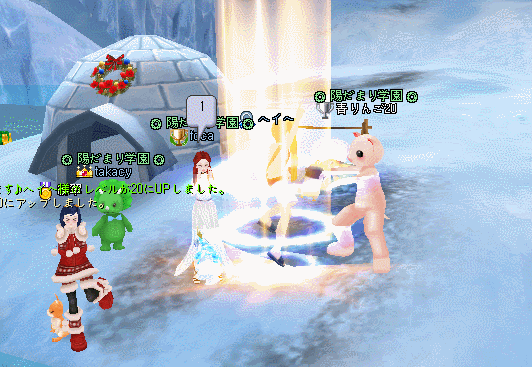 雪が降る中秋を楽しむあくま(*'▽')