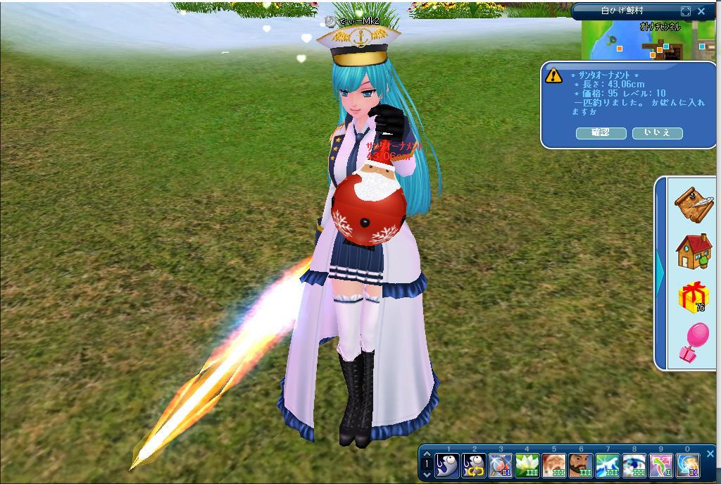 終了間際になってやっとこさサンタオーナメント釣り上げて1週目のクエ終わらせて止めました。。