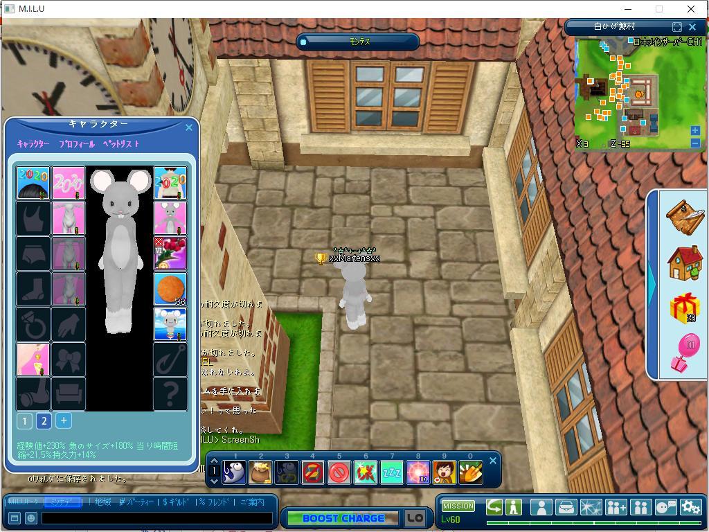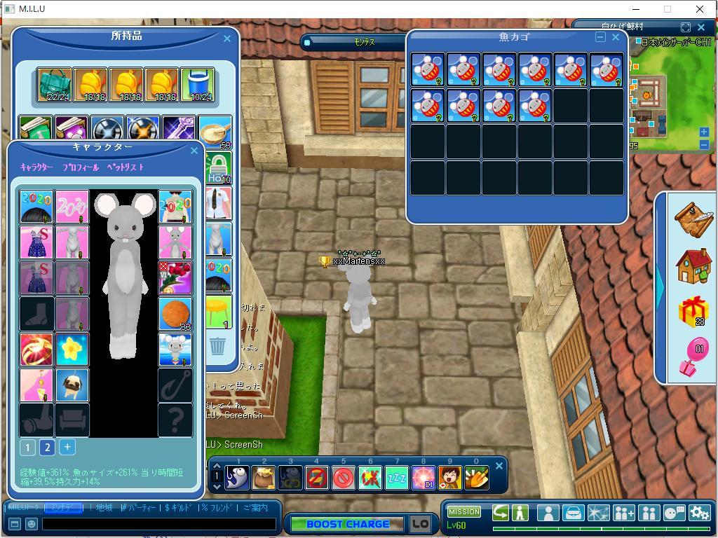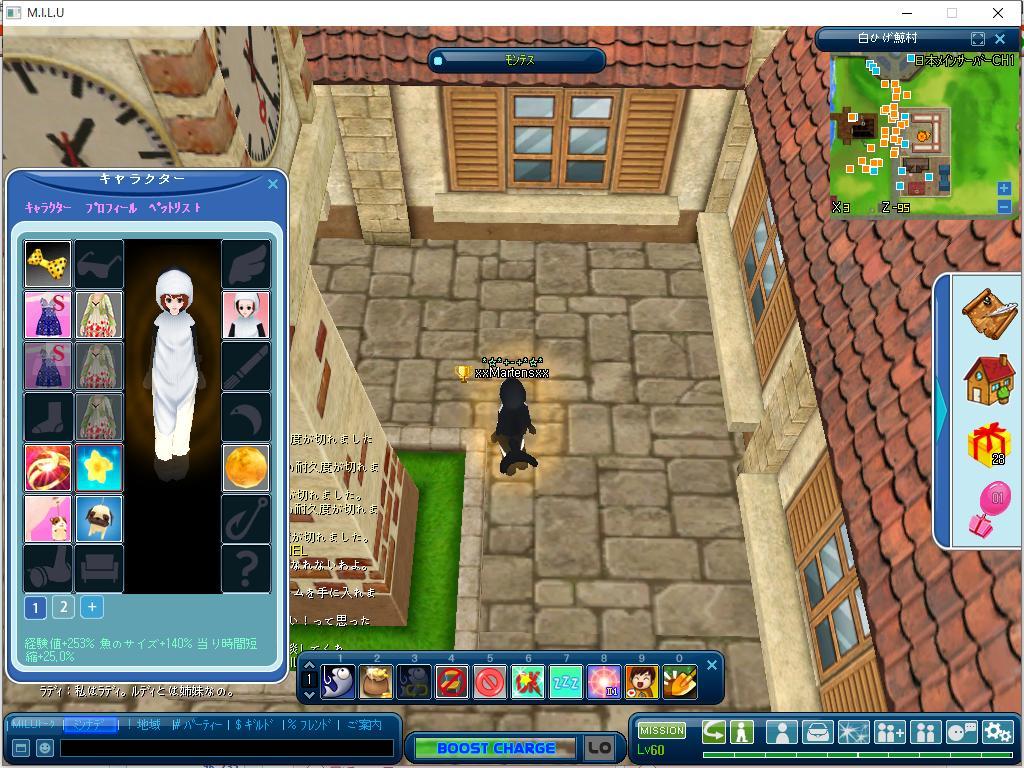 で、今度は100匹くらい釣って手に入れる事ができた装備を装着してみた状態