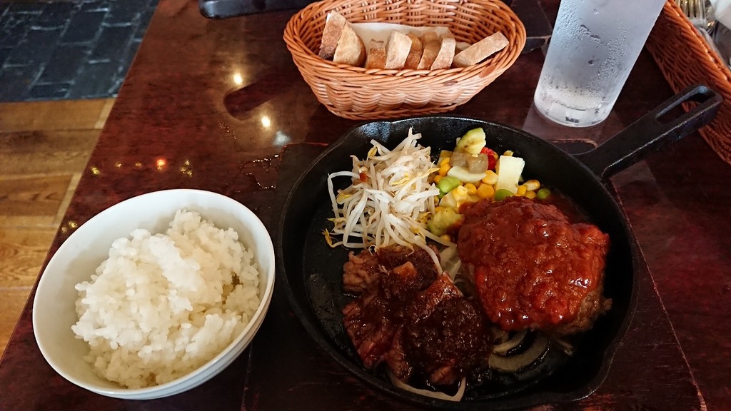 ハンバーグとステーキのセット。