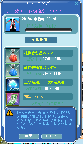 経験値はもうこれ以上強化できないようでした。長さは挑戦できるっぽいです。