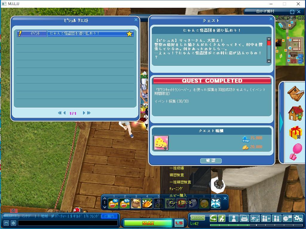 イベントのクエストは、ひとつだけ完了しました。