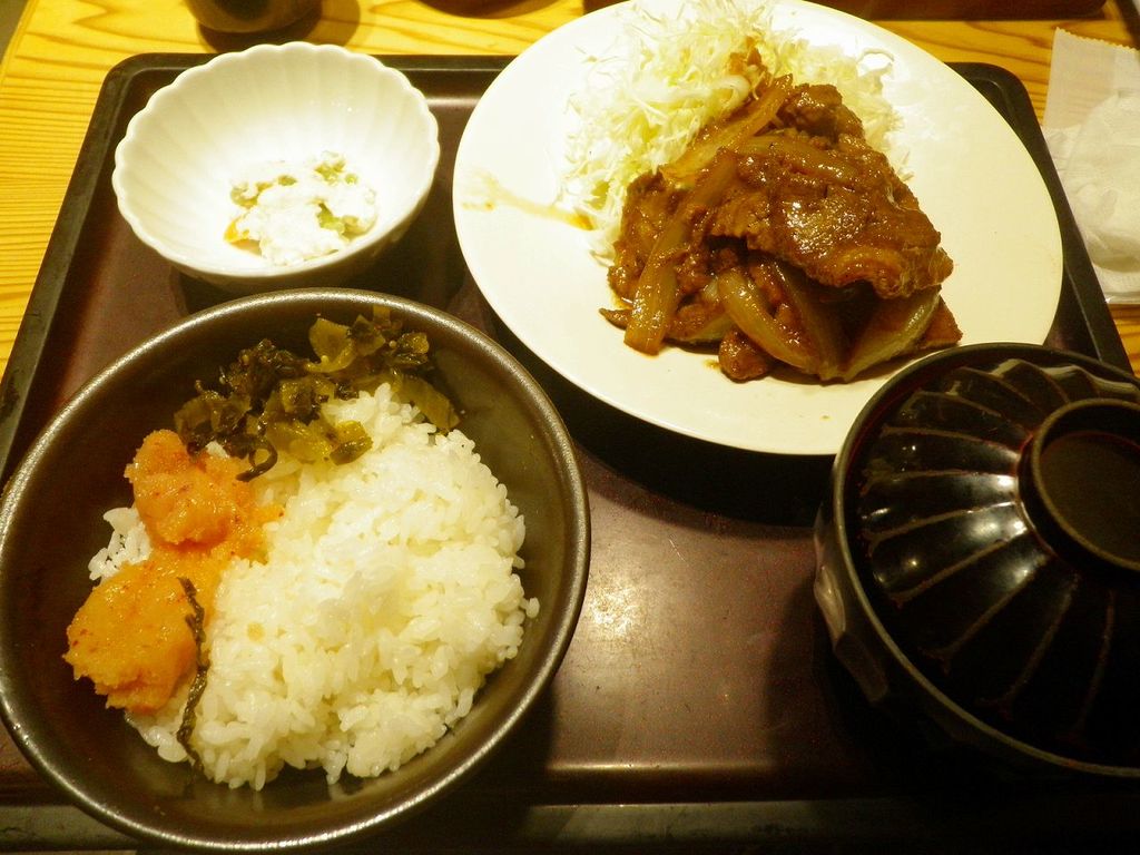 「もつ鍋やまや」の「生姜焼き定食」ランチ+「明太子」/「辛子高菜」食べ放題o(^-^)o