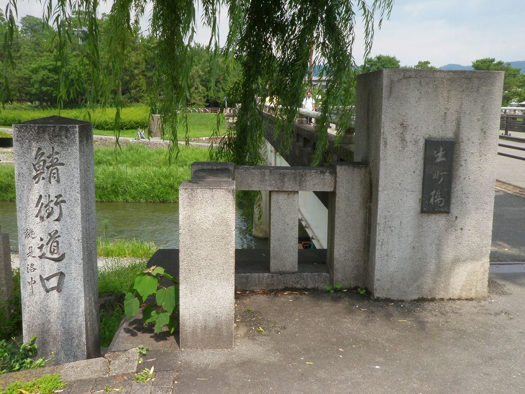 京都は左京区「賀茂川」に掛かる「出町橋」のたもとにある石碑『鯖街道口』