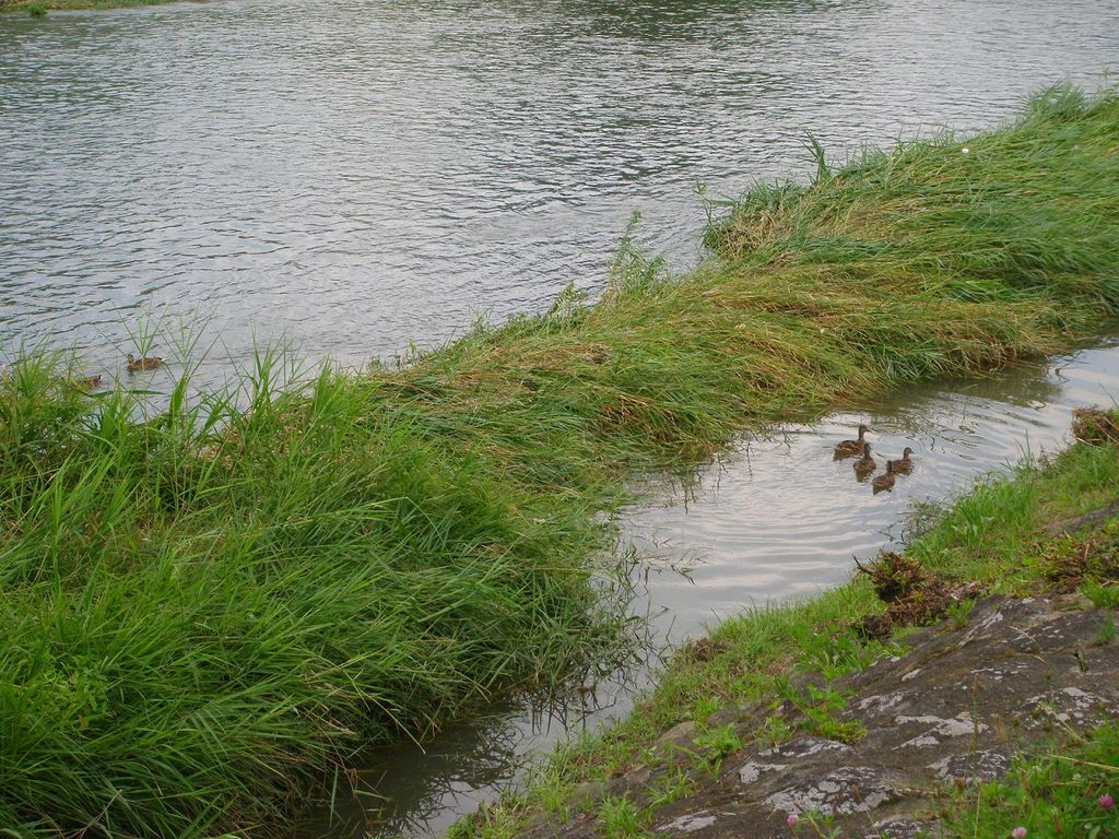 護岸近くの草木も水の流れでなぎ倒されてます!で、その傍らにはノンビリと泳ぐ水鳥がぁぁ