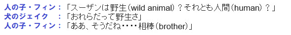 にゃんこの帽子を被った女の子・スーザンの正体がわからなくて途方に暮れる 人の子フィン