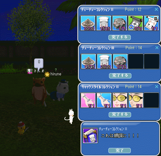 空に浮かぶ島・・天空だよな・・とw天使の誘いポータル一番最初のNPCで好かったよ!ここで釣れるとかにしたら、また賑わったのにね!!そんなこんなの今週のクエだけど・・メンテ前のこと、いっきまーすw 時限クエは4まで終わらせた!根性というか、苦行のような・・お肉も頑張って終わらせた!おちゅw2週目のコレブは3種類完成できました♪コレグレが、やっと8-5にUPしました(*´ω`*)次は、新しいクエができる・・9になれるんだwアタイはドリンク作る材料が1個も出なかったんだけど・・お肉は4回チャレンジできる!って~1個だけできたよってヽ(*´з`*)ノ趣味じゃないと仰るエモドリンク頂きました゚+(人・∀・*)+。アリガト♪ おまわりさんステップ一時期流行った、アンゴラ村長?のネタのようなステップw連続エモでした(`・ω・´)ゞ アタイは嫌いじゃない・・このエモ☆ネムネムで、屋根に突っ込んだパトカー(マテマテw