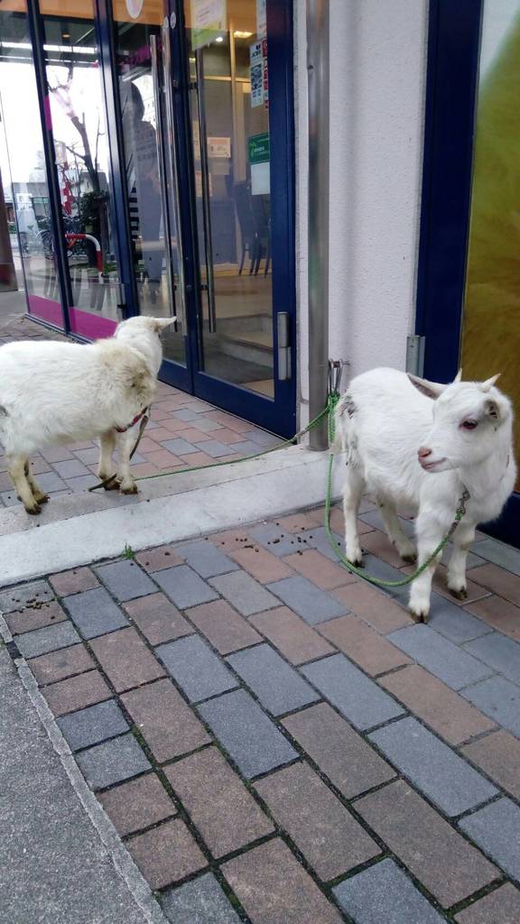 街中で山羊発見~([+]Д・)