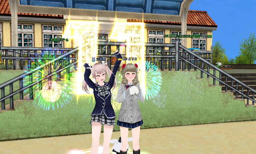 そこで ログインした さりーなを誘ってMILUスク校庭へ
