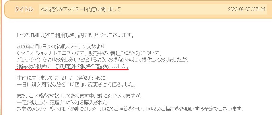 意味の解らない お詫び告知~