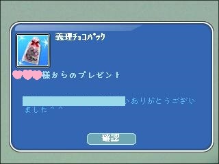|-`).。oO(あえて誰からもらったのかは運営さんには内緒! あ~ログで追っかけられるのかな?・・・)