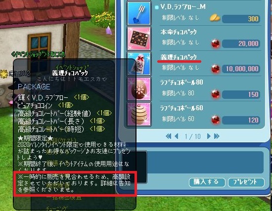 <イベントショップ>トモエスカにて「義理チョコパック」購入の際、