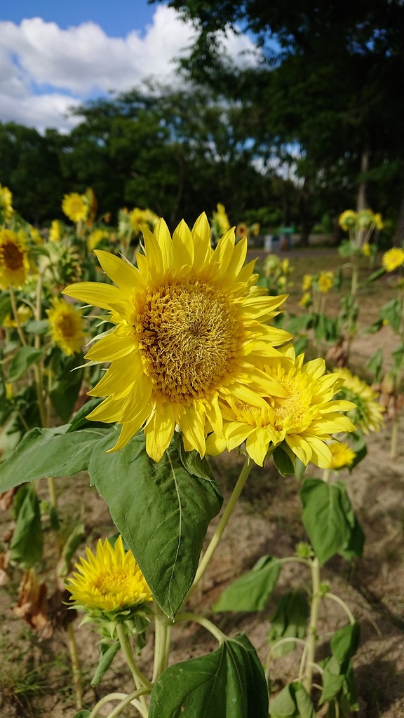 | ひまわりが とても綺麗に咲いて居ますネ!万博記念公園ですか?まだ 行った事がないですネ! 後芸実は爆発ダの 岡本太郎さんの 太陽の塔も 観てみたいですネ! |