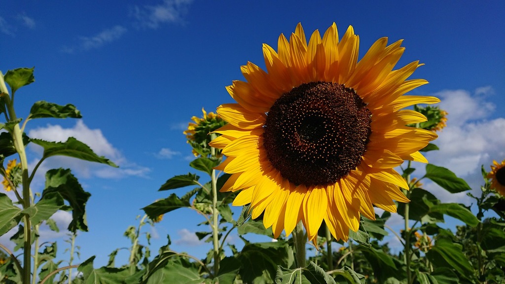 | 青空とひまわり、ステキなコントラストですね |