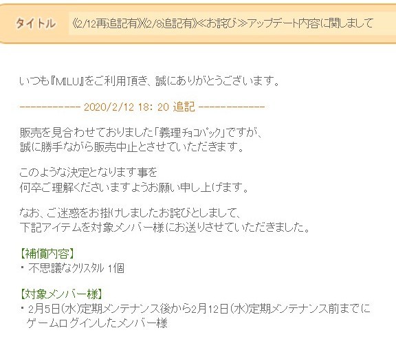 あーメンテ後に追記されててもお知らせの彼方に消えてたので気づかんかった^^;