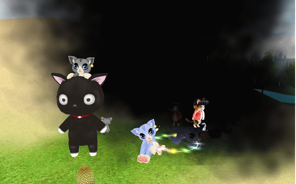 大きな黒猫さんが、帰り損ねた数匹を 暗闇の世界に落とそうとするのを