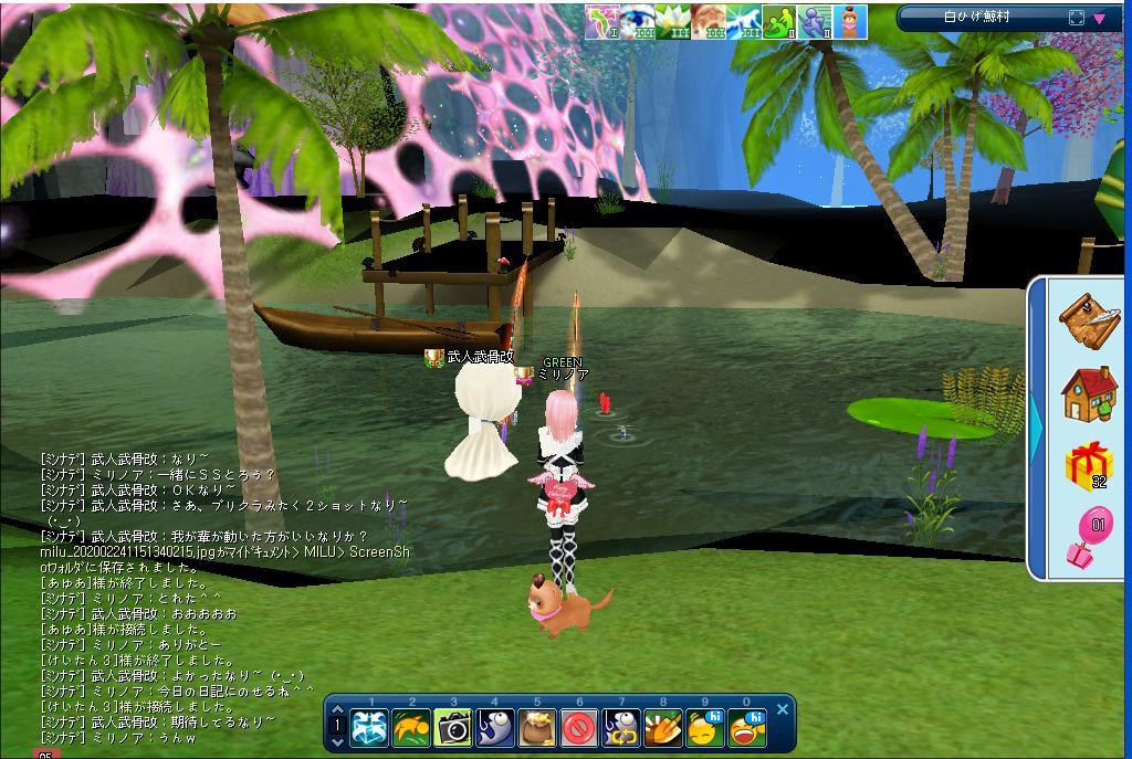 午前中ちょっと遅くにINしました。いつものごとく、きのこのもりにいたら、武人さんが、ほりほりしてました。二人で釣りは楽しく、別れ際もさみしかったです。今度、ほりほり手伝うよ。武人さん。では、またねー♬