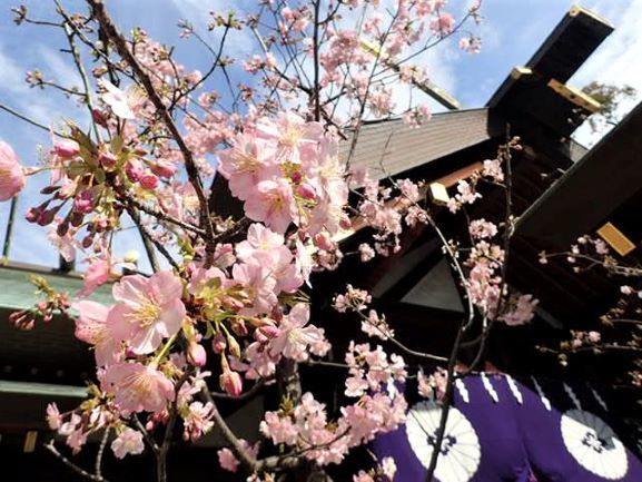 先日、都内の神社で 桜の花が咲いているのを見つけました