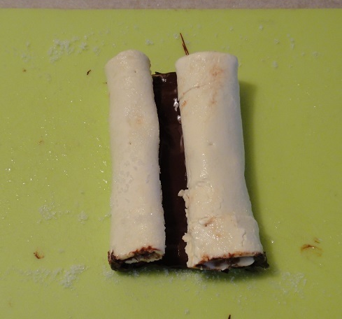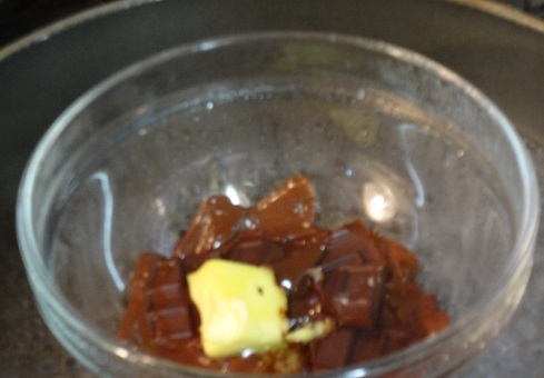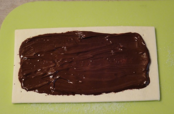 チョコ1枚とバターを湯煎で溶かして、パイシートにぬりぬりして