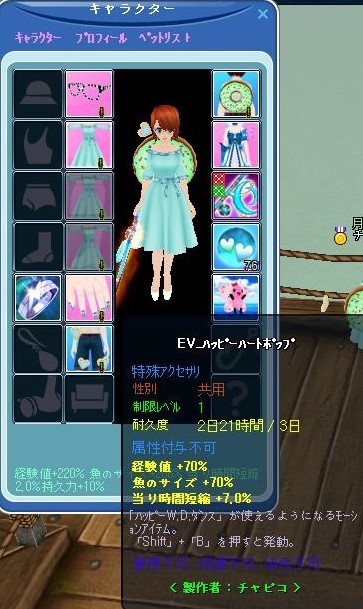この「EV_ハッピーハートポップ」は耐久3日ですが、+70%、+70%。+7%の優れもの・・・背中の方で「青いハート」が地味にポッピングしてます~~(*^_^*)/♪♬