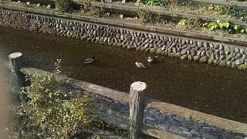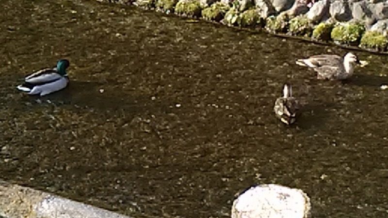 今日ゎ天気が良くポカポカ陽気だったので、小川が流れてる道を散歩してたらカルガモ2匹とマガモ1匹が居たので思わず持ってたスマホで撮っちゃいました。。