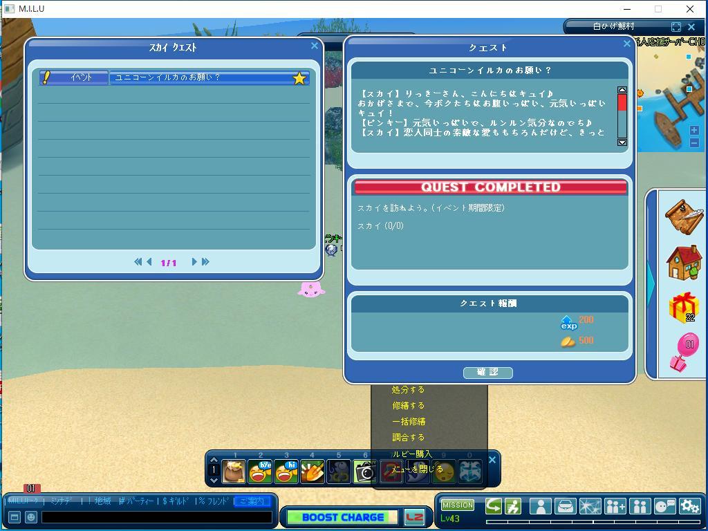 こちらが、最初に完了した、イベントのクエストです。