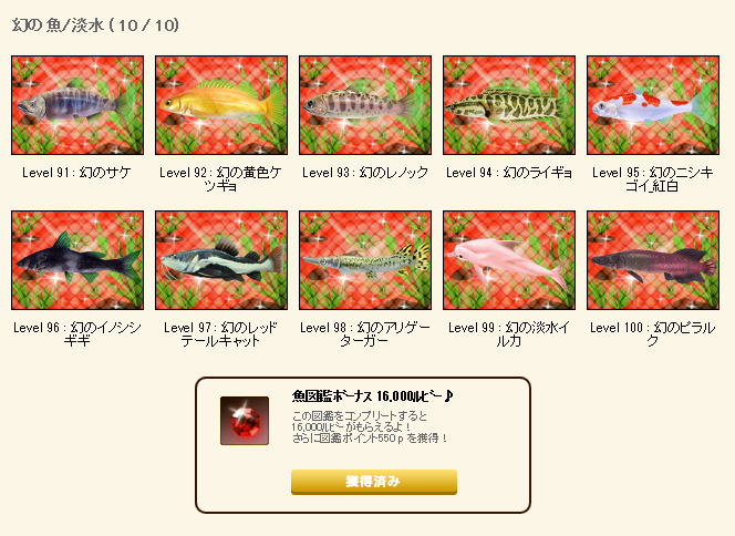 幻の魚/淡水が完成しましたので16,000ルビー頂きました やったぜ!